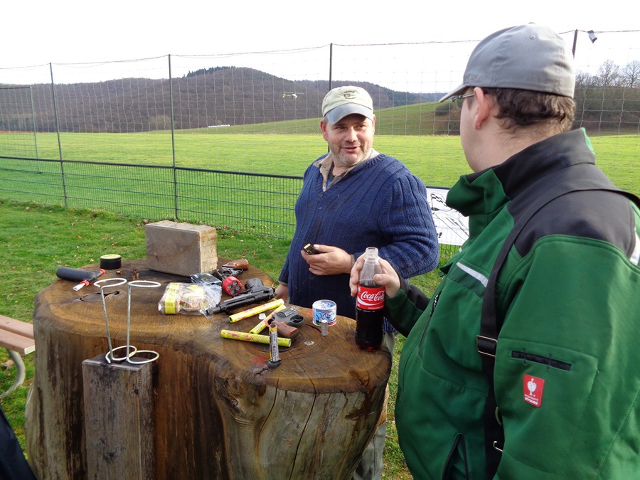 Dabei versuchte Andreas mit seinem Sohn Steven ( 13 Jahre ) mit Feuerwerkskörpern, zur allgemeinen Erheiterung, Modelle die in der Luft waren abzuschießen. Aber die Modelle waren halt schneller oder höher. Keine Chance.